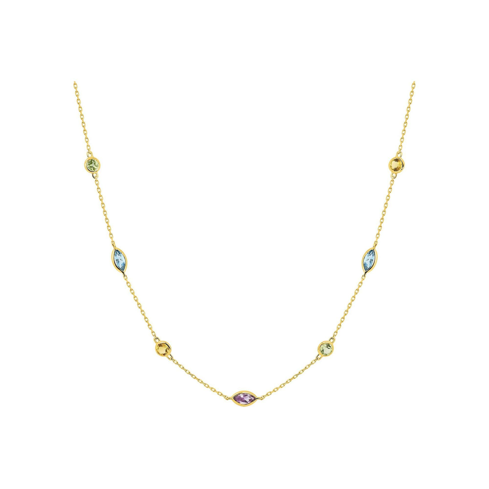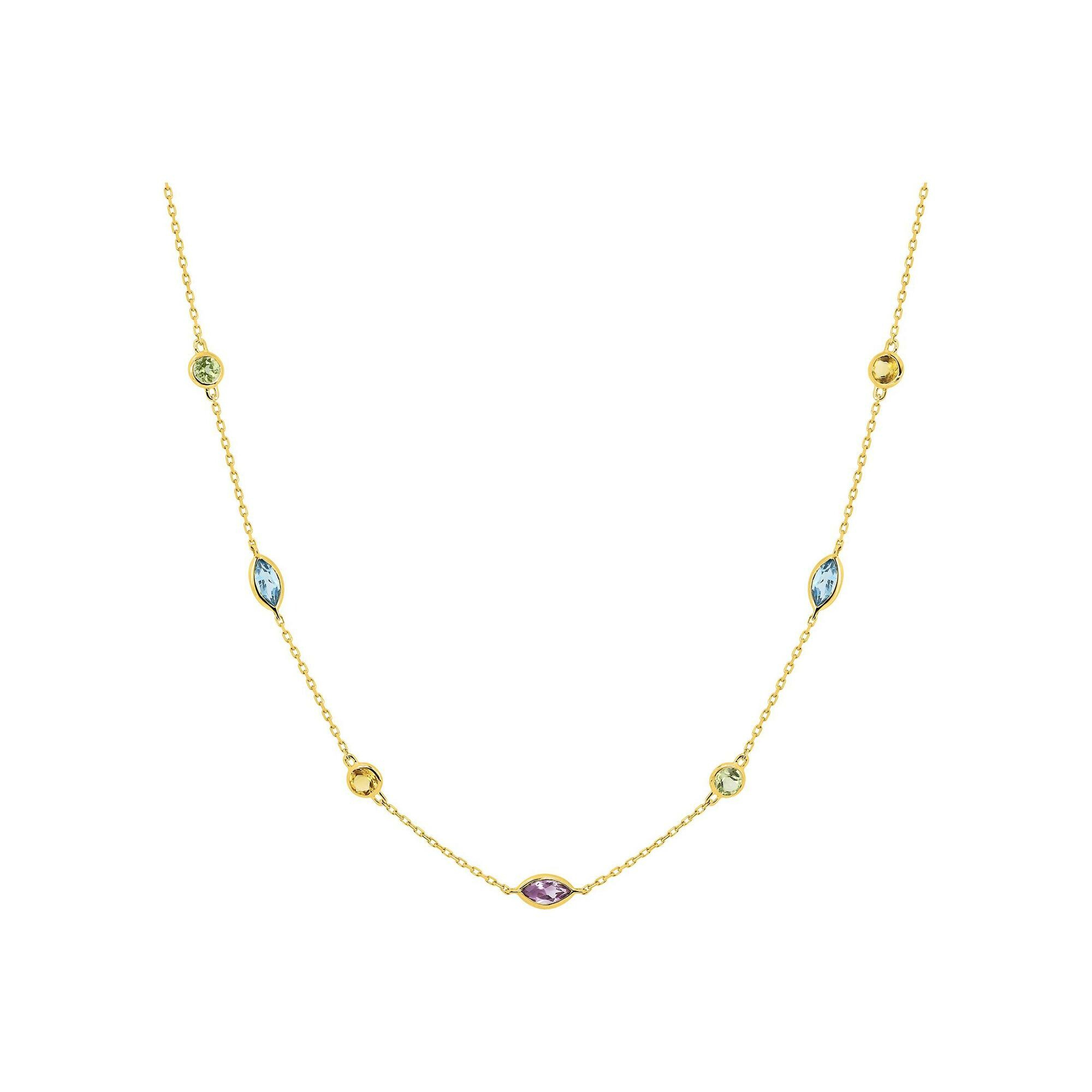 Collier en or jaune, améthyste, péridot et citrine et topaze bleue