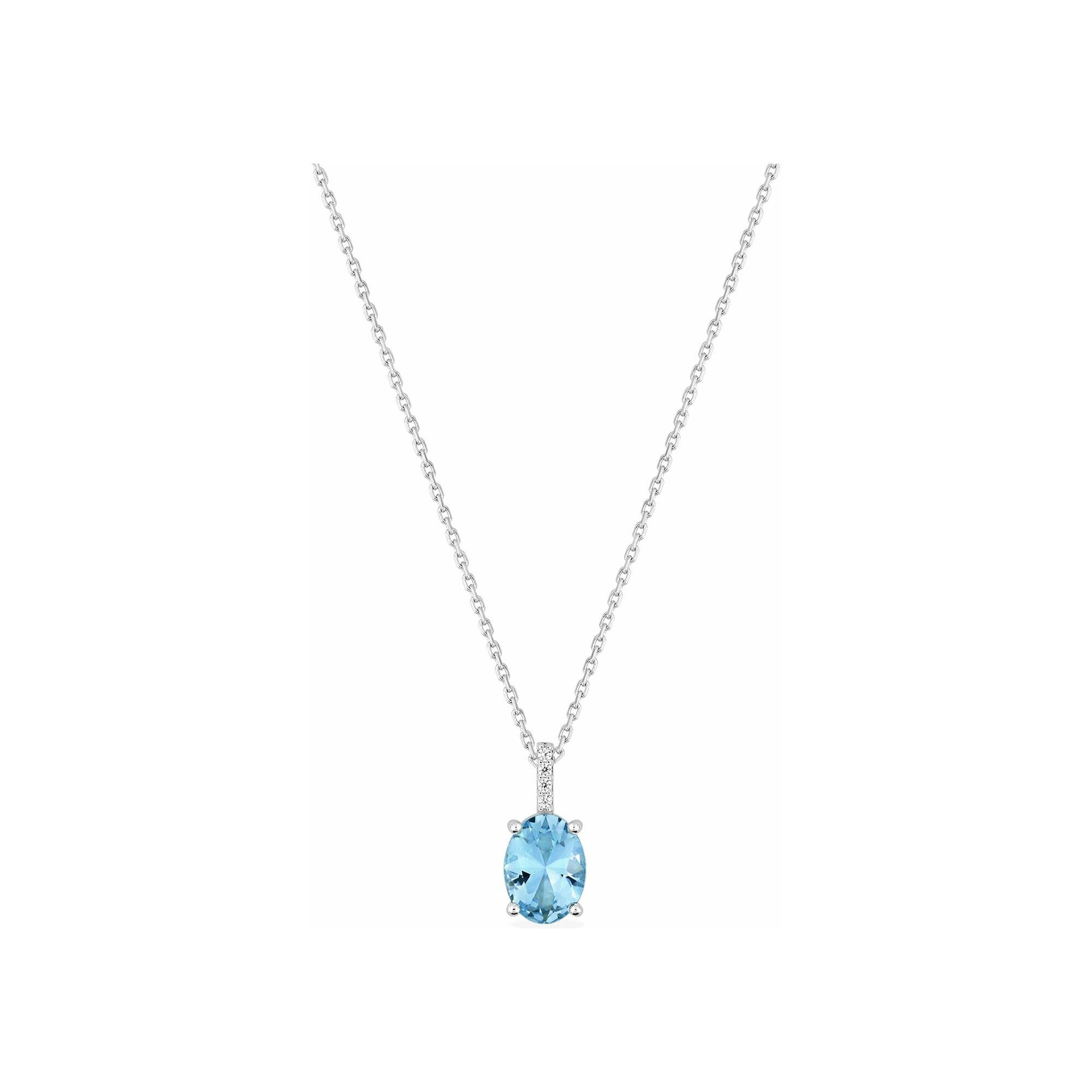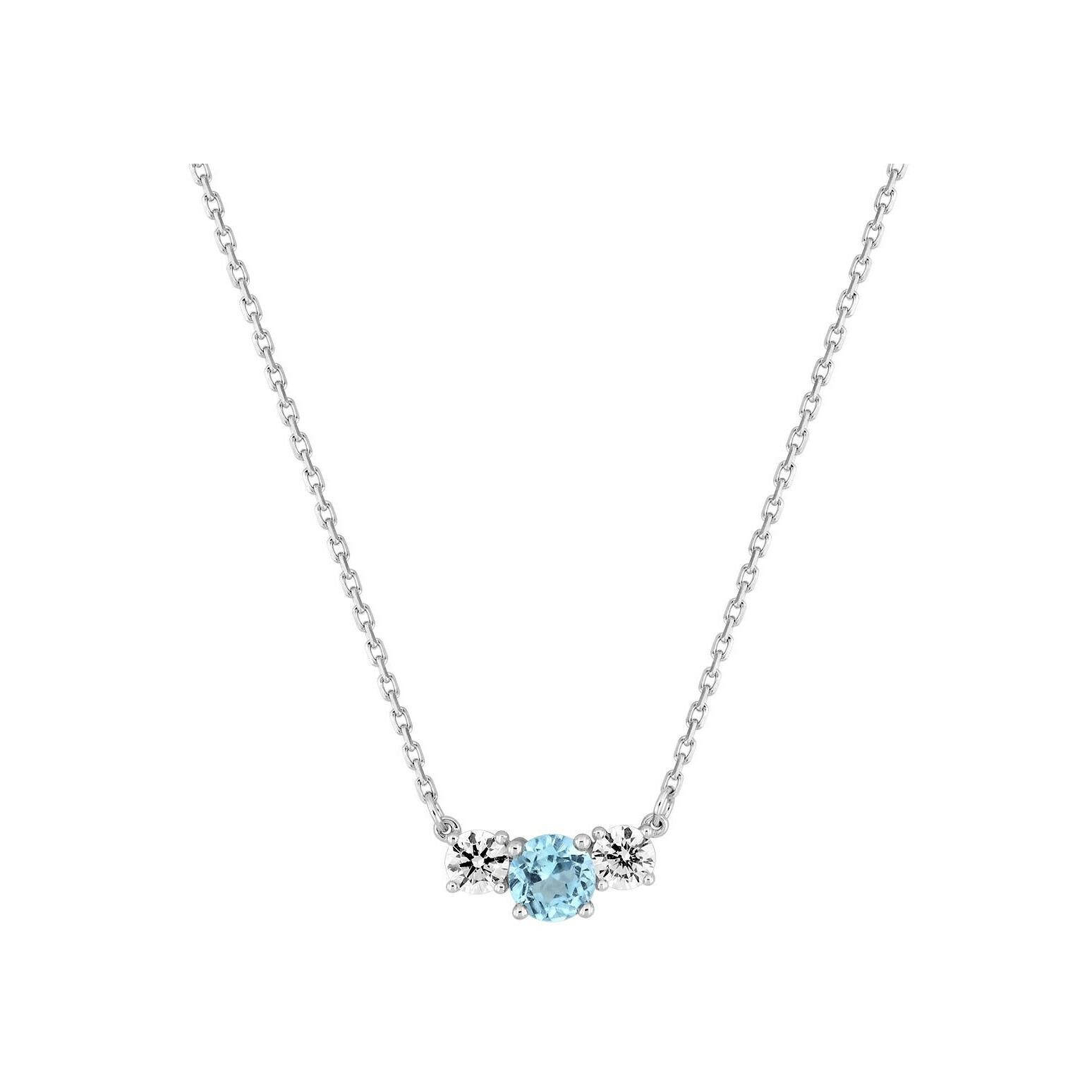 Collier en or blanc, oxyde de zirconium et topaze bleue