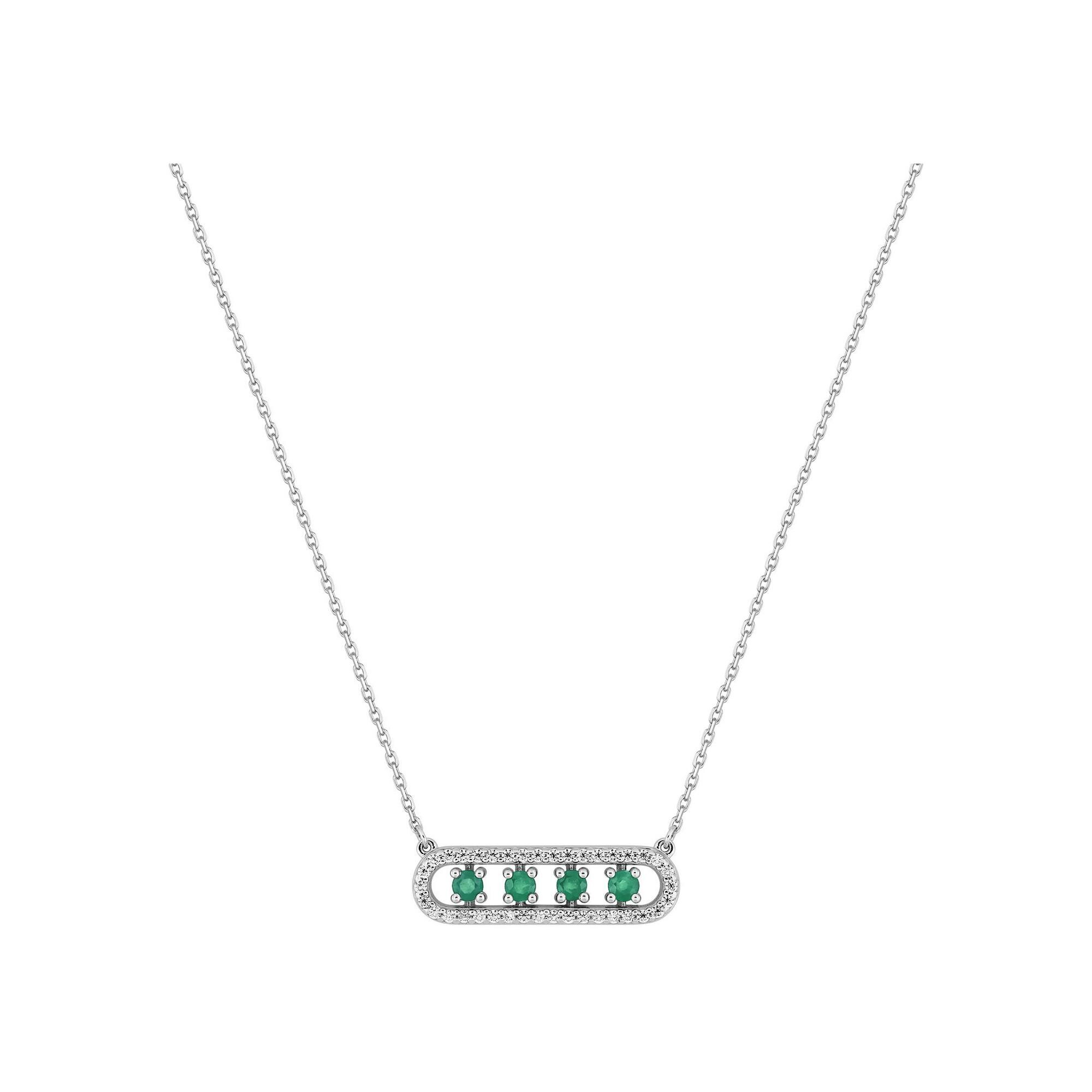 Collier en or blanc, émeraude et oxyde de zirconium