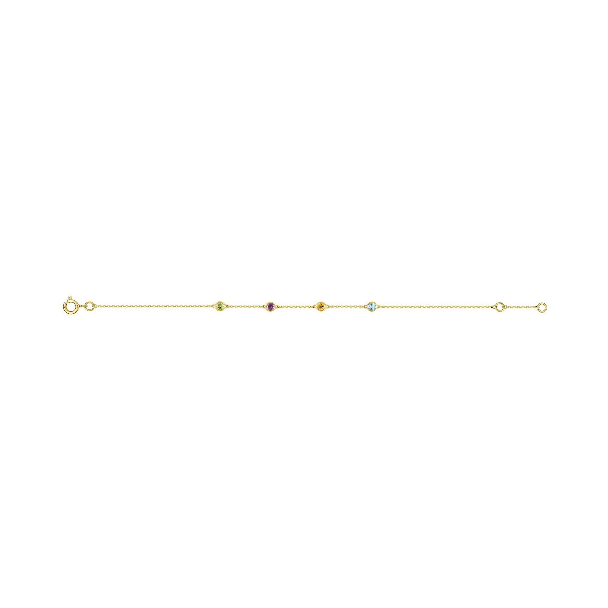 Bracelet en or jaune, citrine, péridot, améthyste et topaze bleue