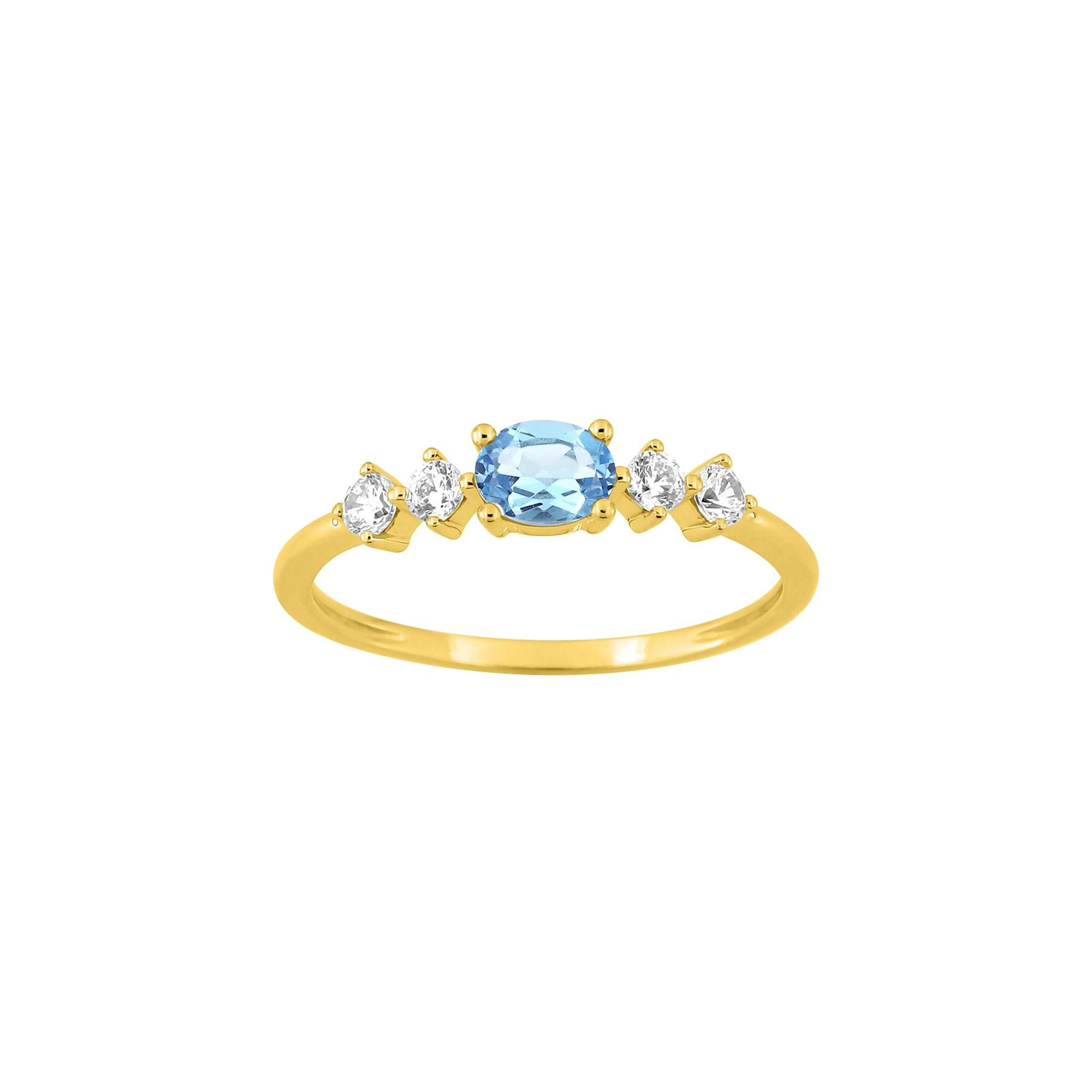 Bague en or jaune, oxyde de zirconium et topaze bleue