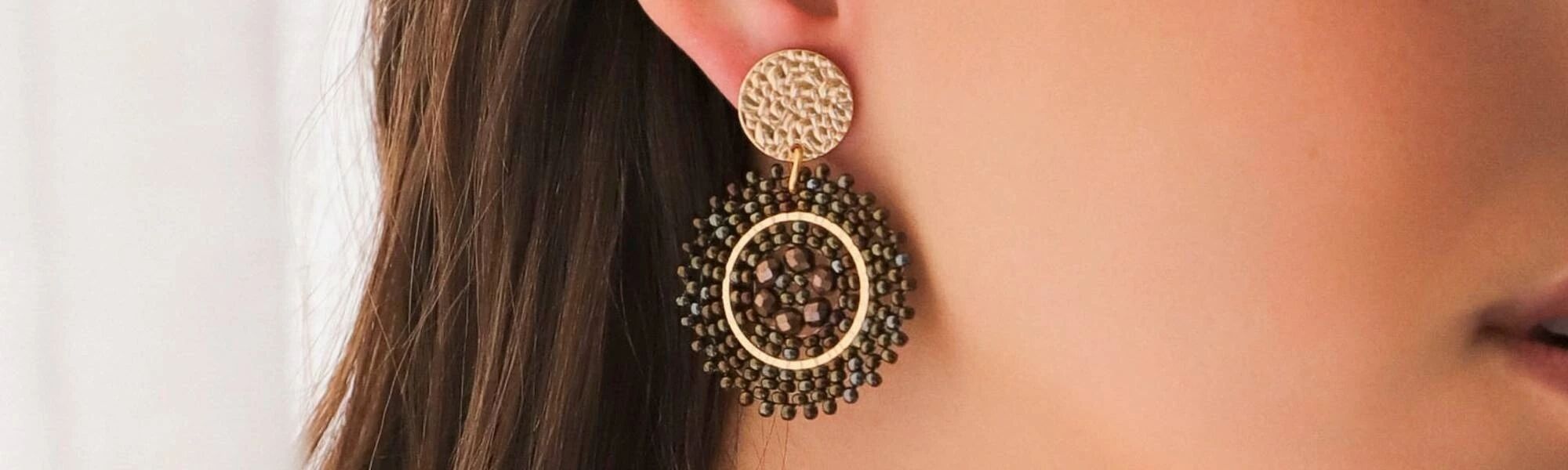 Boucles d'oreilles Sàntibé Bijoux Cancun en laiton, métal doré et perles sable